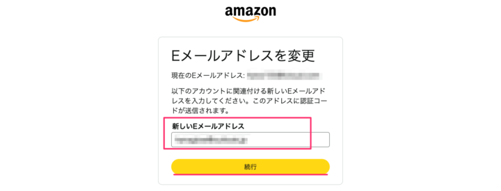 Eメールアドレスの変更です。「新しいEメールアドレス」を入力し、「続行」をクリックします。