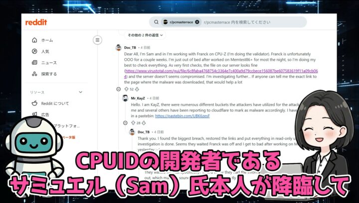 こには、開発者本人が明かした「巧妙な罠」があったの。実は騒動の最中、Redditの掲示板にCPUIDの開発者であるサミュエル(Sam)氏本人が降臨して、直接状況を説明してくれたのよ!