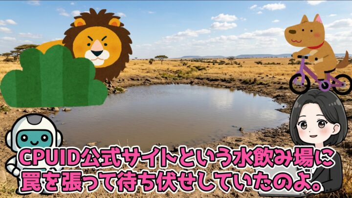 自然界でライオンが獲物を狩る時のことを想像してみて。獲物が必ず集まる「水飲み場」で待ち伏せするでしょ? 今回のハッカーも同じで、パソコンユーザー、特に自作PCユーザーが必ず訪れるCPUID公式サイトという水飲み場に罠を張って、待ち伏せしていたのよ。