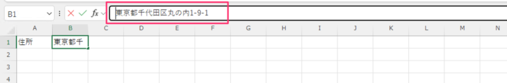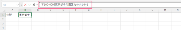 数式バーでセル内改行する方法です。
