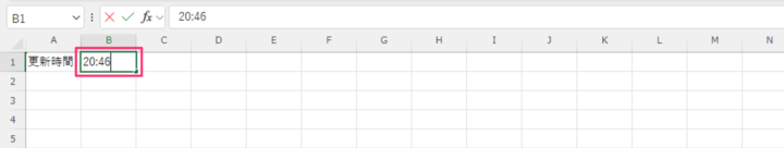 現在の時刻を入力したいセルを選択します。