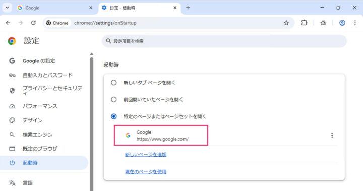 Google Chromeでは、起動時に表示されるホームページを自由に変更できます。
