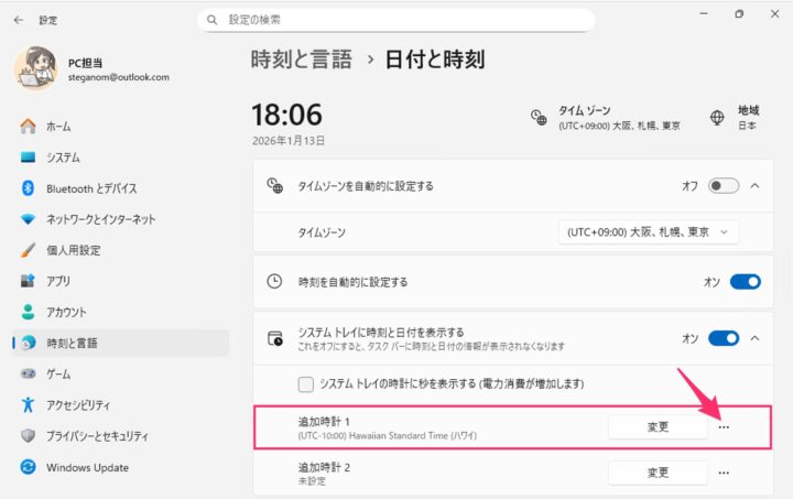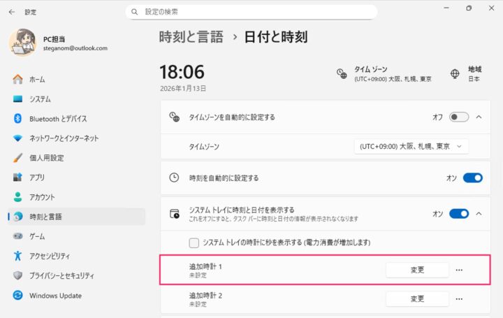 Windows11で複数のタイムゾーンの時計を表示する方法を紹介します。
