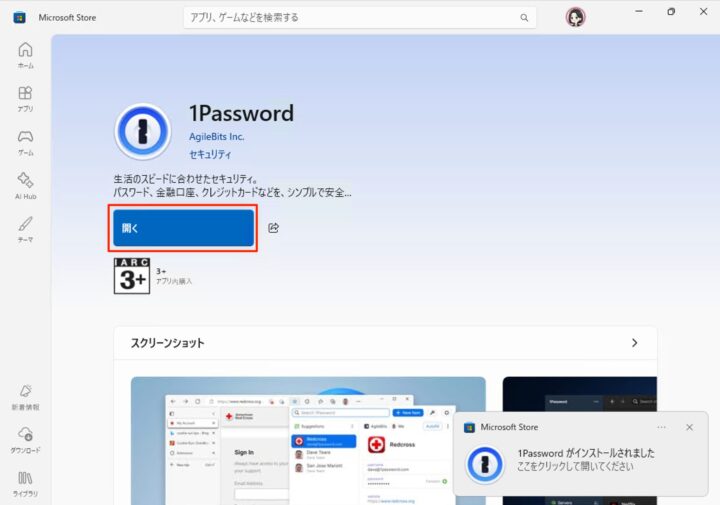 Windows11に1Passwordをダウンロード・インストールする方法です。