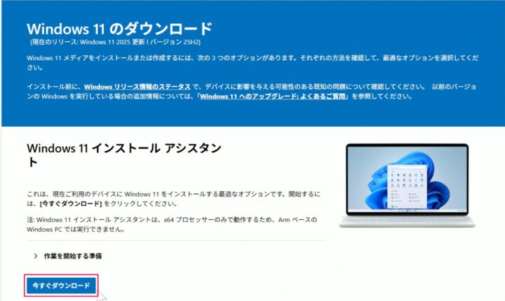本記事では、Microsoftが提供するインストールアシスタントを利用して、手動で25H2へアップデートする方法を解説します。