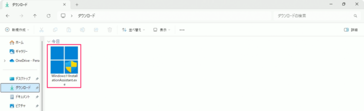 ダウンロードした「Windows11InstallationAssistant.exe」ファイルをダブルクリックします。