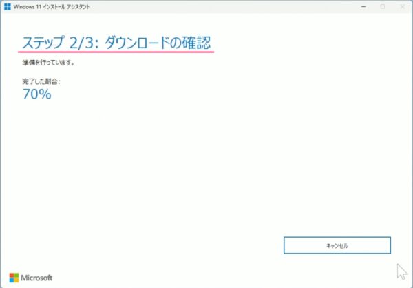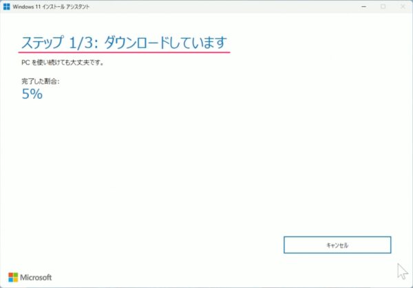 ステップ 1/3: Windows 11 25H2のダウンロードがはじまります。
