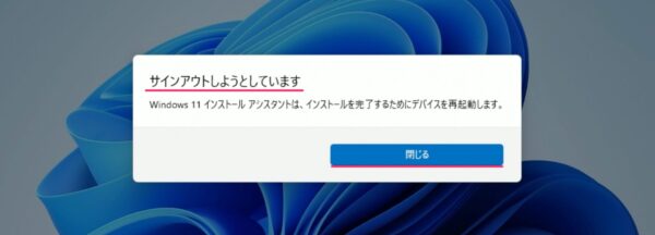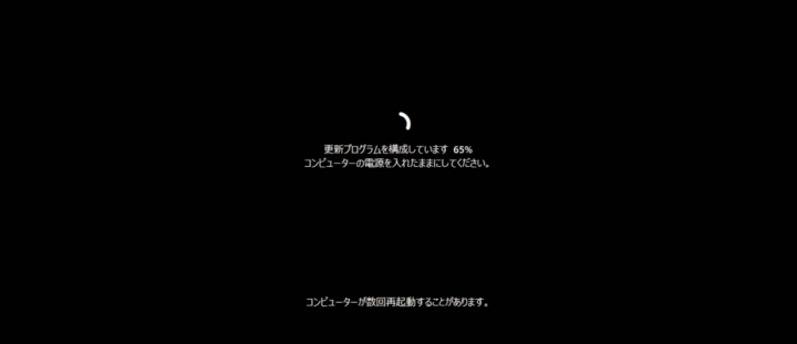 クリックするとPCが再起動され、更新プログラムが構成されます。