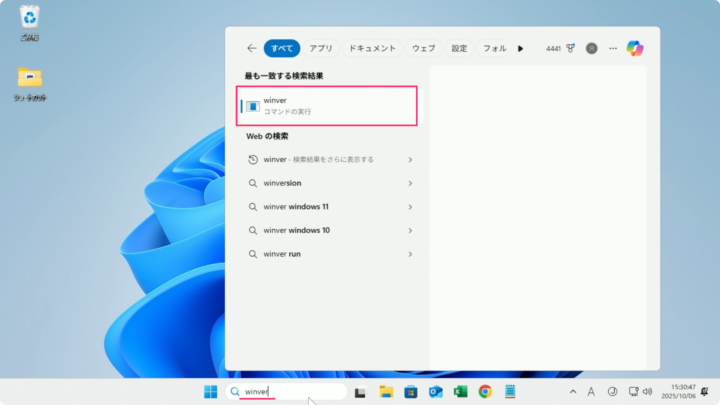 再起動後、「winver」コマンドでWindows11のバージョンを確認してみましょう。