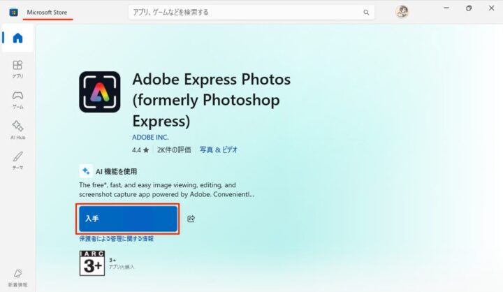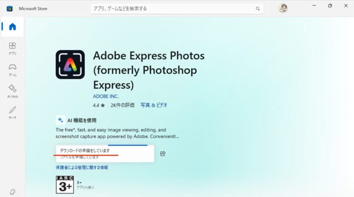 Windows11にAdobe Express Photos(旧Photoshop Express)をインストールする方法を紹介します。