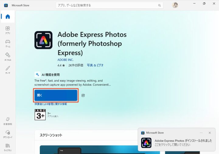 これでAdobe Express Photosのインストールは完了です。