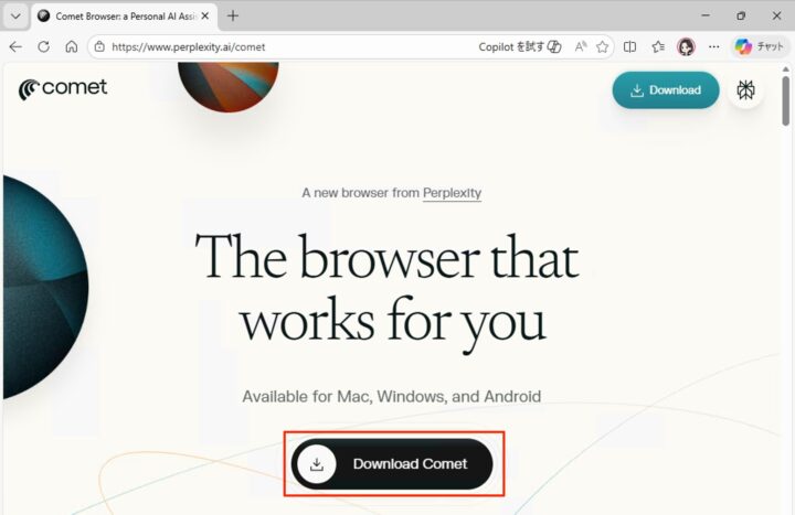 この記事では、Windows 11にCometをダウンロードしてインストールする手順を解説します。