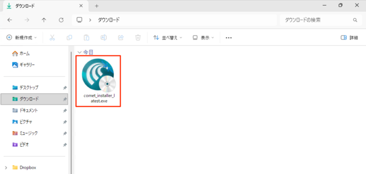 ダウンロードしたファイル(comet_installer_latest)を実行します(ダブルクリック)。