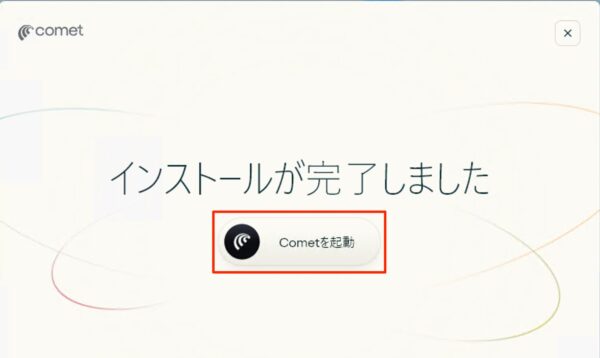インストールが完了しました。「Cometを起動」をクリックします。