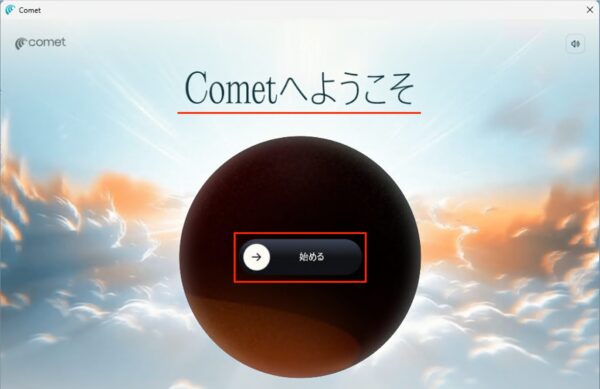 Cometへようこそ。「始める」をクリックします。