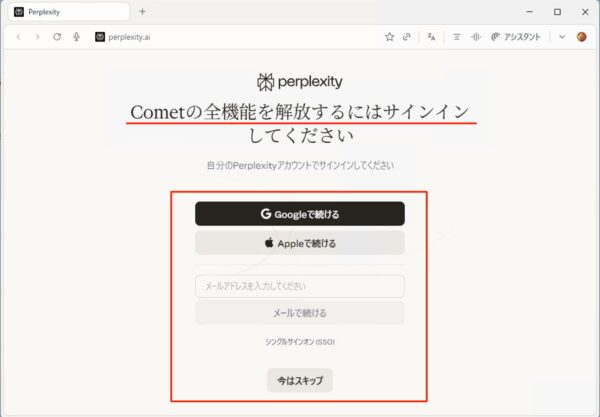 Cometの全機能を解放するには、Perplexityアカウントでサインインしましょう。