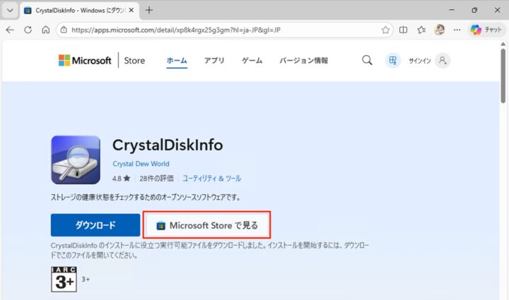 「Microsoft Storeで見る」をクリックします。