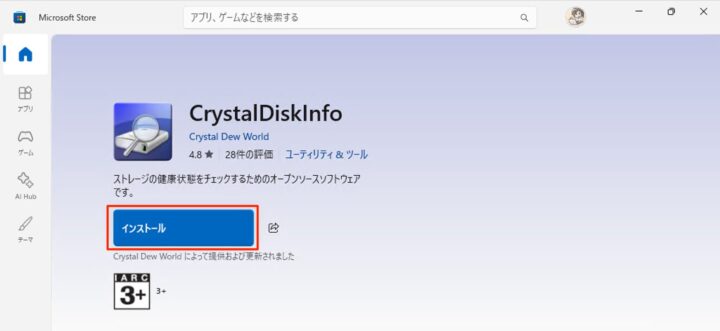 CrystalDiskInfoをダウンロード・インストールする