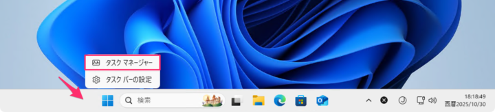 表示されたメニューの「タスクマネージャー」をクリックします。