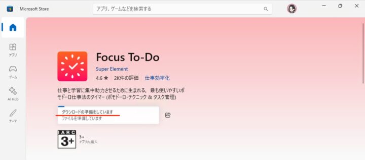 Windows11にFocus To-Doをダウンロード・インストールする方法です。
