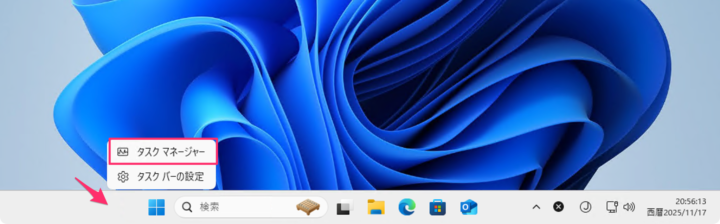 表示されたメニューから「タスクマネージャー」をクリックします。