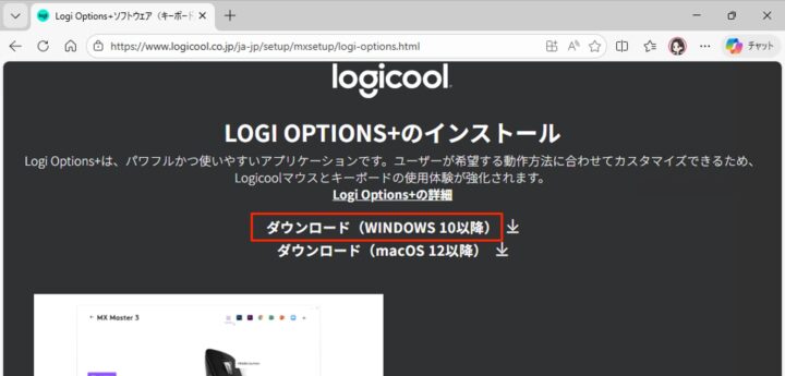 Logi Options+をダウンロード・インストールする