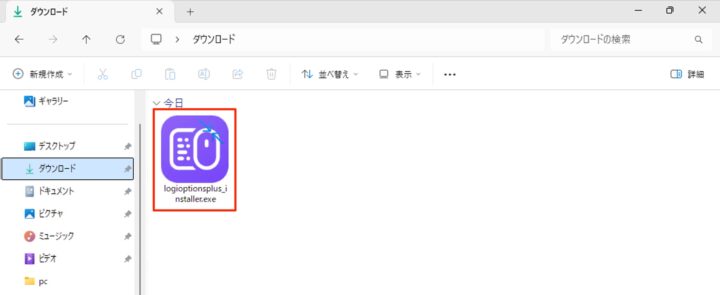 ダウンロードしたファイル(logioptionsplus_installer)を実行します(ダブルクリック)。