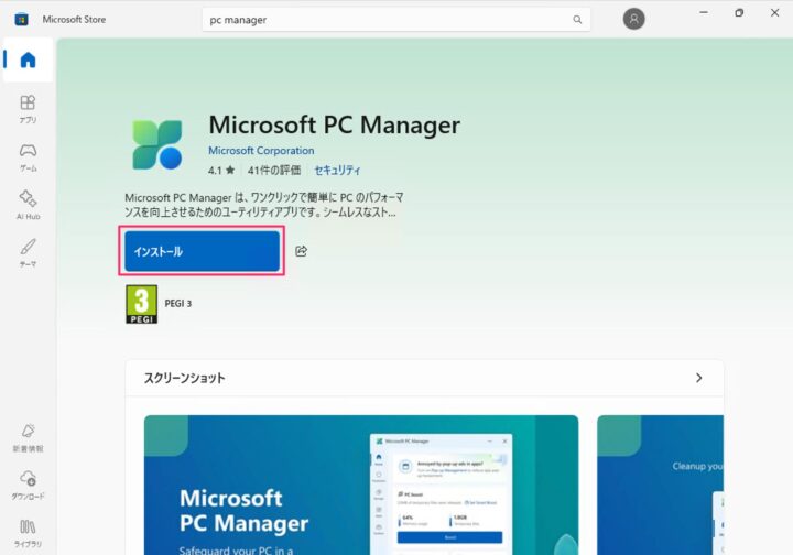 Windows11にMicrosoft PC Managerをダウンロード・インストールするには、以下の操作を行ってください。