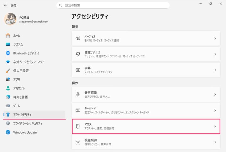 マウスが動かないときや、キーボードだけで操作したいときに便利なのがマウスキー機能です。この機能を使うと、テンキーを使ってマウスカーソルを移動したり、クリック操作を行ったりできます。